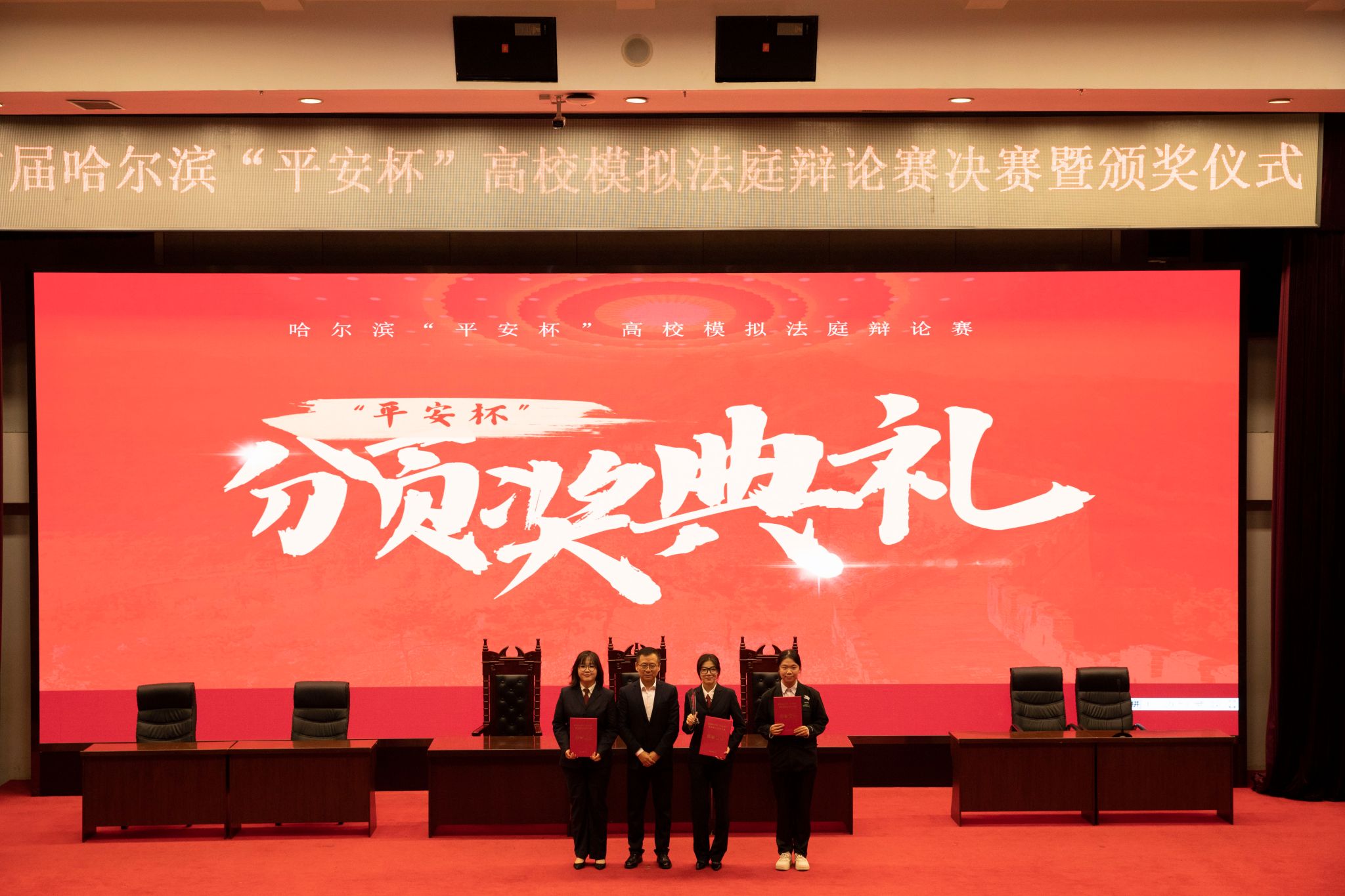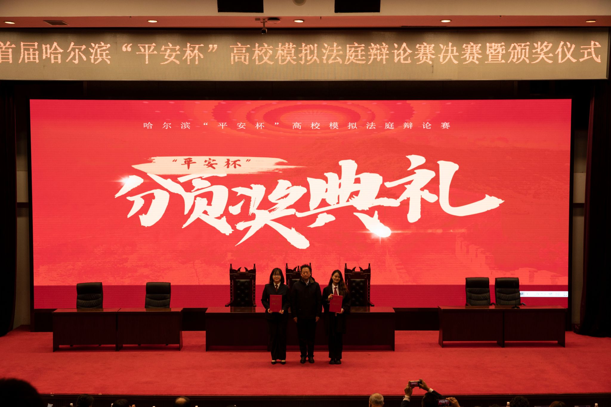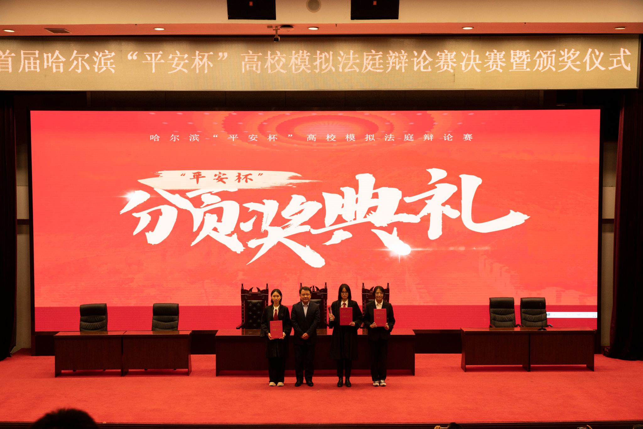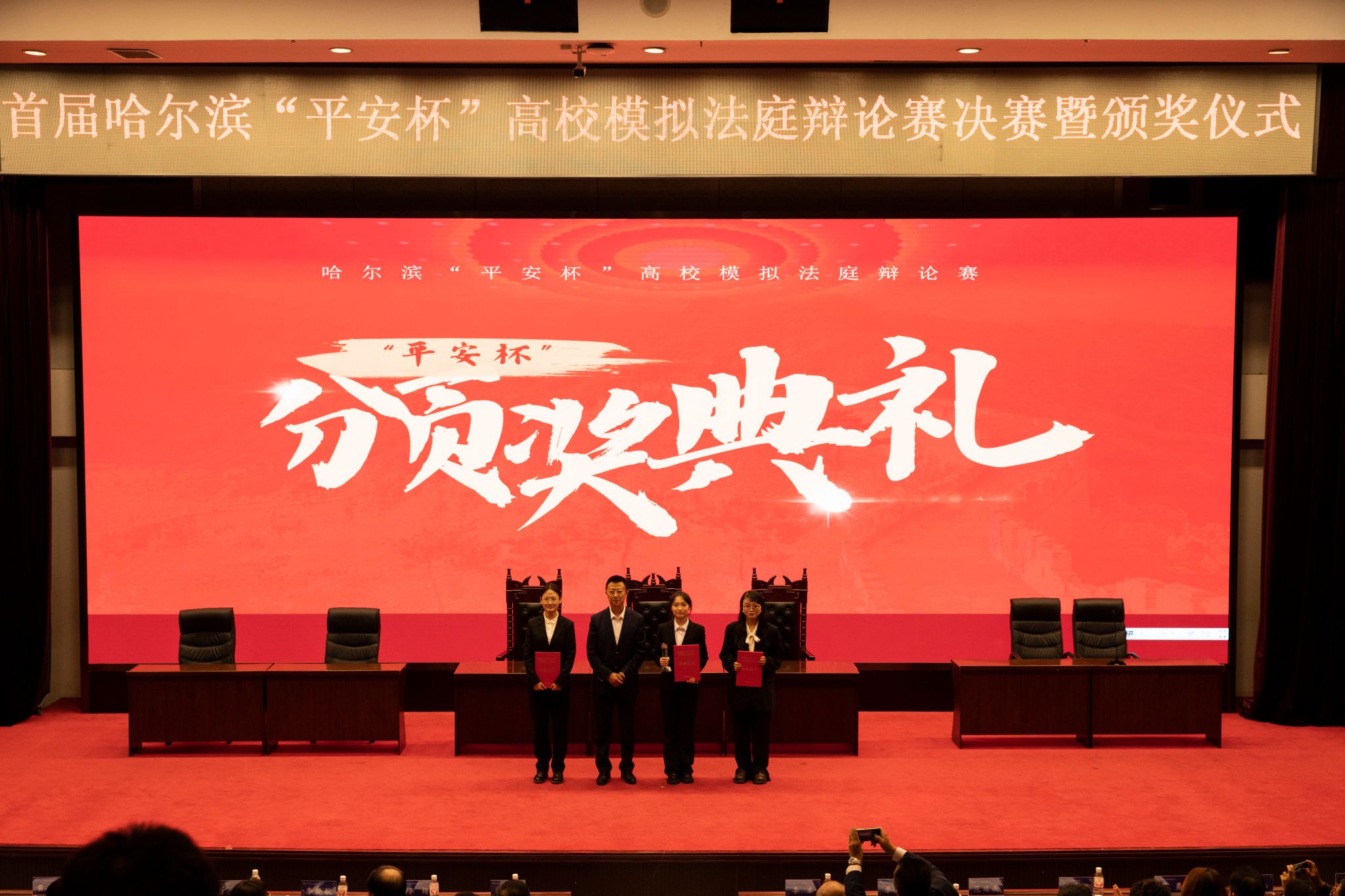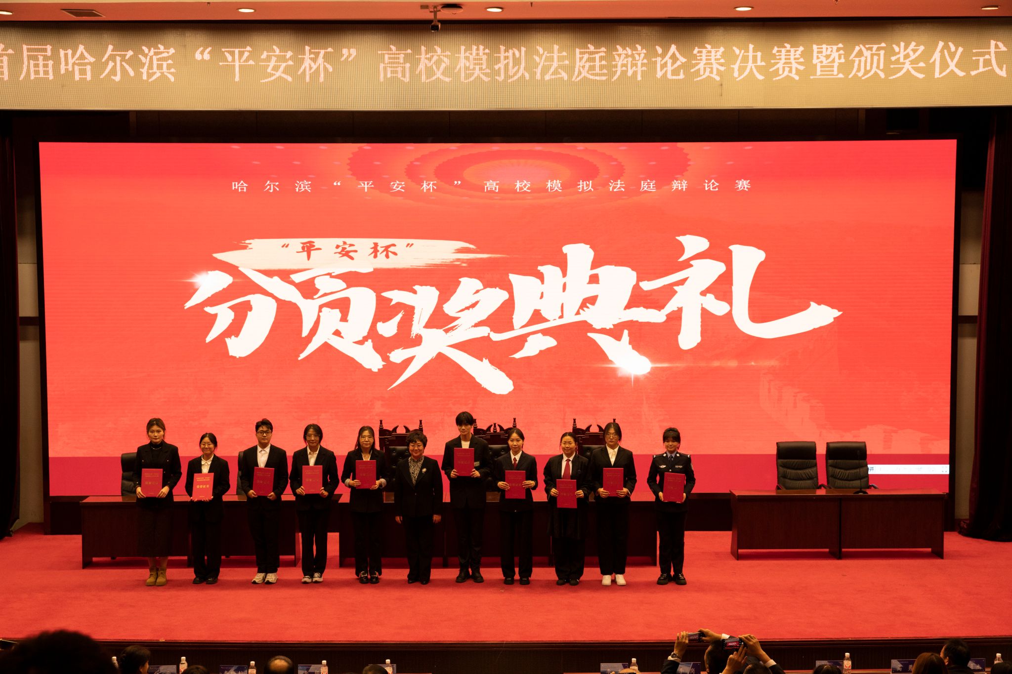 决赛分为刑事组和民事组两个阶段赛事。双方队伍在庭前做精彩简介,随后围绕案例展开激烈辩论,评委老师根据各支队伍的表现给予公正、全面的评价。经过紧张激烈的角逐,最终,哈尔滨医科大学队获得刑事组冠军,黑龙江大学队获得亚军;黑龙江大学队获得民事组冠军,哈尔滨商业大学队获得亚军。大赛还评选出“最佳辩手”“优秀辩手”“明日之星”“优秀领队”“特殊贡献奖”“优秀组织奖”等奖项。颁奖嘉宾为获奖者颁奖,并鼓励赛手们继续努力,为法治事业贡献力量。