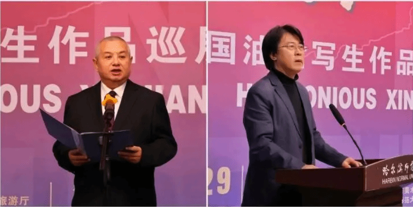 钟华在致辞中指出,此次巡展是全国油画名家用笔触对新疆之美的深情描绘与生动展现,为黑龙江观众带来了震撼视觉与触动心灵的艺术盛宴。希望黑龙江与新疆以此次巡展为新起点,进一步深化两地交流合作,为提升中华文化影响力提供强力支撑,推动两地文艺和文旅事业繁荣发展。
