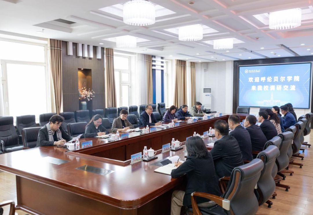 张宏天对我校的热情接待表示感谢,并简要介绍了呼伦贝尔学院的发展历程、师资队伍、学科专业建设等情况。他指出,两校渊源深厚,呼伦贝尔学院的很多教师毕业于哈师大,为学校发展建设作出了重要贡献。希望通过此次调研,学习兄弟院校的先进经验和典型做法,进一步加强双方的交流合作,推动两校各项事业高质量发展。