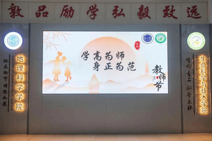 师道既尊,学风自善。每一个时代都赋予了教师特殊的使命,新时代更是对教育工作者提出了新的要求与期冀。展示教师风貌,共兴尊师风尚,是提升教育质量、培养优秀人才的重要途径。我校以庆祝第40个教师节暨表彰大会为契机,通过开展“为教师亮灯”活动、向“时代楷模”杨士莪同志学习系列活动、组织收看“教育家精神大讲堂”报告会等多种形式,培树先进,挖掘身边优秀教育工作者,充分发挥榜样引领作用。法学院、地理科学学院、教育科学学院开展为教师献花、制作贺卡、设计制作拼接画、征文等教师节主题系列活动,积极营造节日氛围;斯拉夫语学院召开弘扬教育家精神交流座谈会,遴选优秀教师结合个人从教经历做经验交流分享,以榜样带动群体,发挥立德垂范效应;计算机科学与信息工程学院通过学院官微推送教师节特辑专栏,生动展现学为人师、行为世范的优秀教师形象;化学化工学院以党支部为单位开展尊师重教观影活动,营造全体教师学师德、讲师德、树师德的良好氛围;生命科学与技术学院官微开设师德师风专栏并录制教师节祝福视频;传媒学院师生出演原创大师系列剧《大师游寿》,以“后学担当”礼敬、回应“先贤引领”;教师教育学院针对学院研究生组织开展师德培养见习实践活动,提升教育教学能力及师德素养;各学院党委有效运用线上线下宣传模式,不断加强师德文化建设,营造尊师重教的良好氛围,将崇高的师德理念内化于心、外化于行,强化教师的职业荣誉感与责任感,激发广大教育工作者立德树人、铸魂育人的热情与决心。