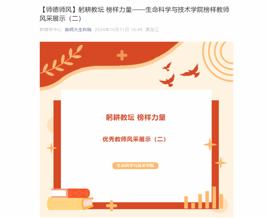 生命科学与技术学院官微开设“躬耕教坛 榜样力量”师德师风专栏