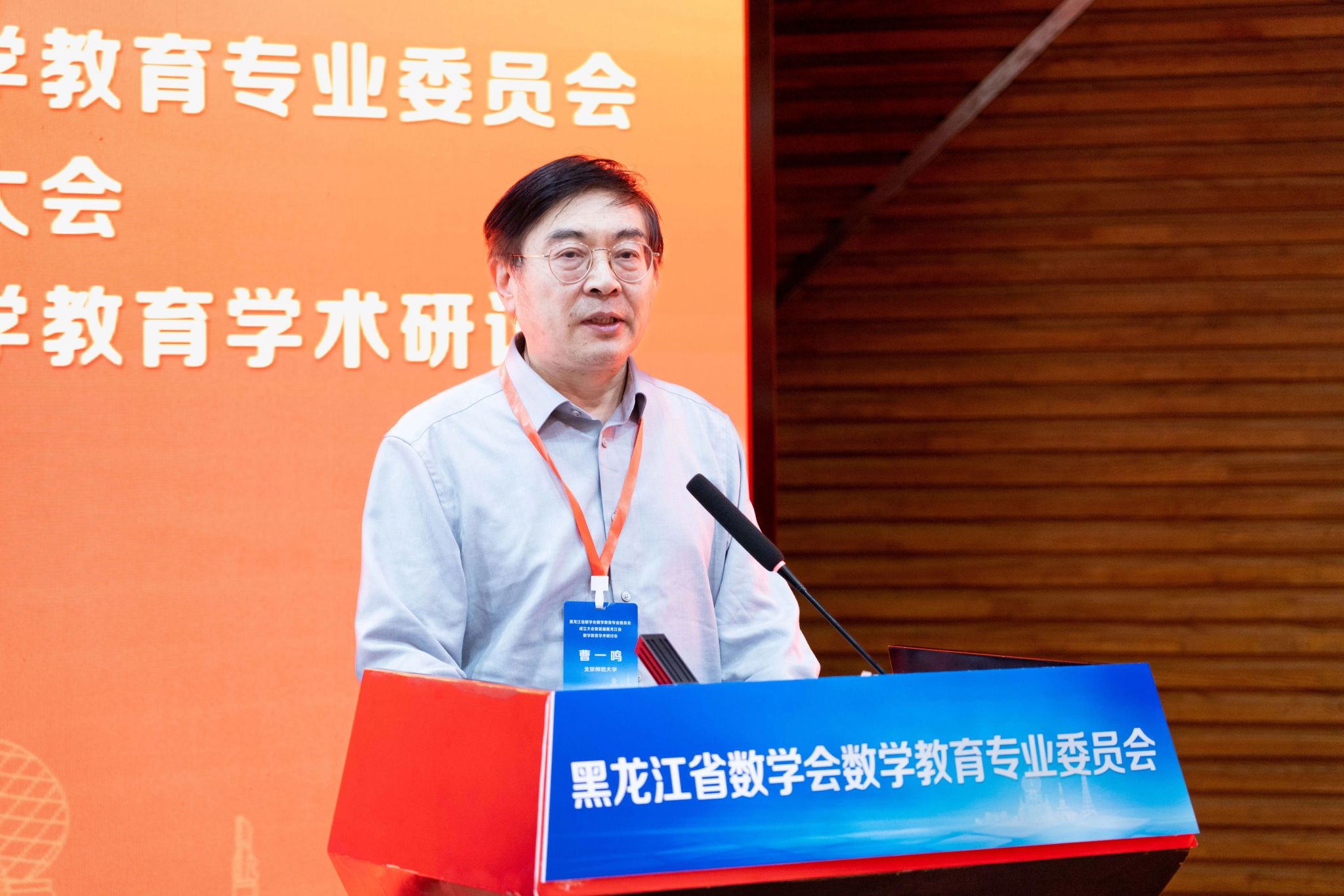 薛小平教授代表黑龙江省数学会对专委会的成立表示祝贺。他指出,数学教育在培养逻辑思维方面的关键作用,数学教育专业委员会应从宏观与微观层面发力,高度关注从高中到大学的教育思想与理念,为黑龙江省乃至全国数学教育事业的进阶注入新的活力与智慧源泉。