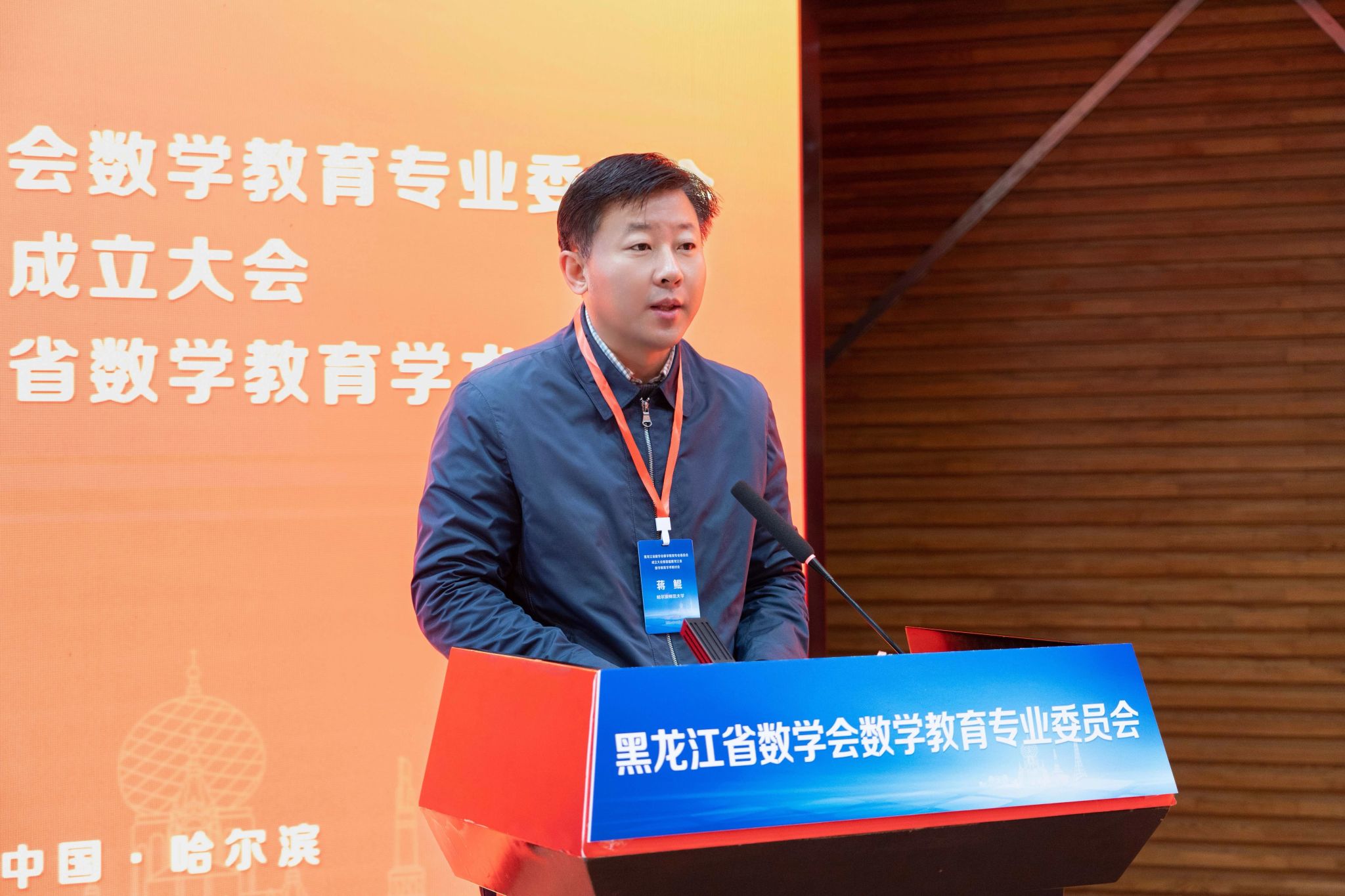 蒋鲲教授在致辞中代表学校对与会嘉宾的到来表示热烈欢迎,对黑龙江省数学会给予承办机会表示衷心感谢,并向省内外数学教育专家、学者对学校发展的支持致以谢意。蒋鲲指出,专委会的成立旨在整合教育资源、提升教育水平,培养出更多的高素质数学人才,也为数学教育工作者提供交流合作的良好平台。近年来,学校在多方面取得积极进展,数学专业历史悠长、积淀深厚,期待通过本次大会,同与会专家深入交流,共同探索数学教育新方向,为龙江数学教育事业贡献力量,开启崭新的篇章。