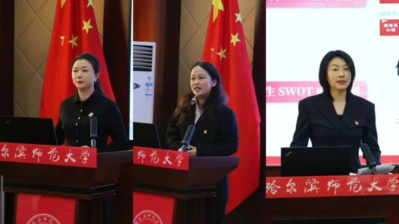 培训过程中,黑龙江省教育厅思想政治教育处(省委教育工委宣传部)处长(部长)张爽,拼搏在线登录党委副书记、工会主席郭砾为拼搏在线登录辅导员名师工作室特聘顾问颁发聘书。全国首批高校辅导员名师工作室主持人、拼搏在线登录音乐学院党委书记范晓丹;黑龙江省辅导员名师工作室主持人,拼搏在线登录美术学院副处级辅导员王慧、化学化工学院学工办主任刘倩依次进行现场展示。与会专家进行点评,提出指导意见和建议。现场展示结束后,参训人员分为两组围绕新时代高校思想政治工作典型问题案例展开热烈研讨。研讨会氛围浓厚、亮点纷呈,智识卓越、成效显著。在思想碰撞中凝聚共识,在总结经验中发展创新,为进一步推动高校思想政治工作发展凝聚智慧、汇聚力量,为高校思想政治工作注入崭新活力。