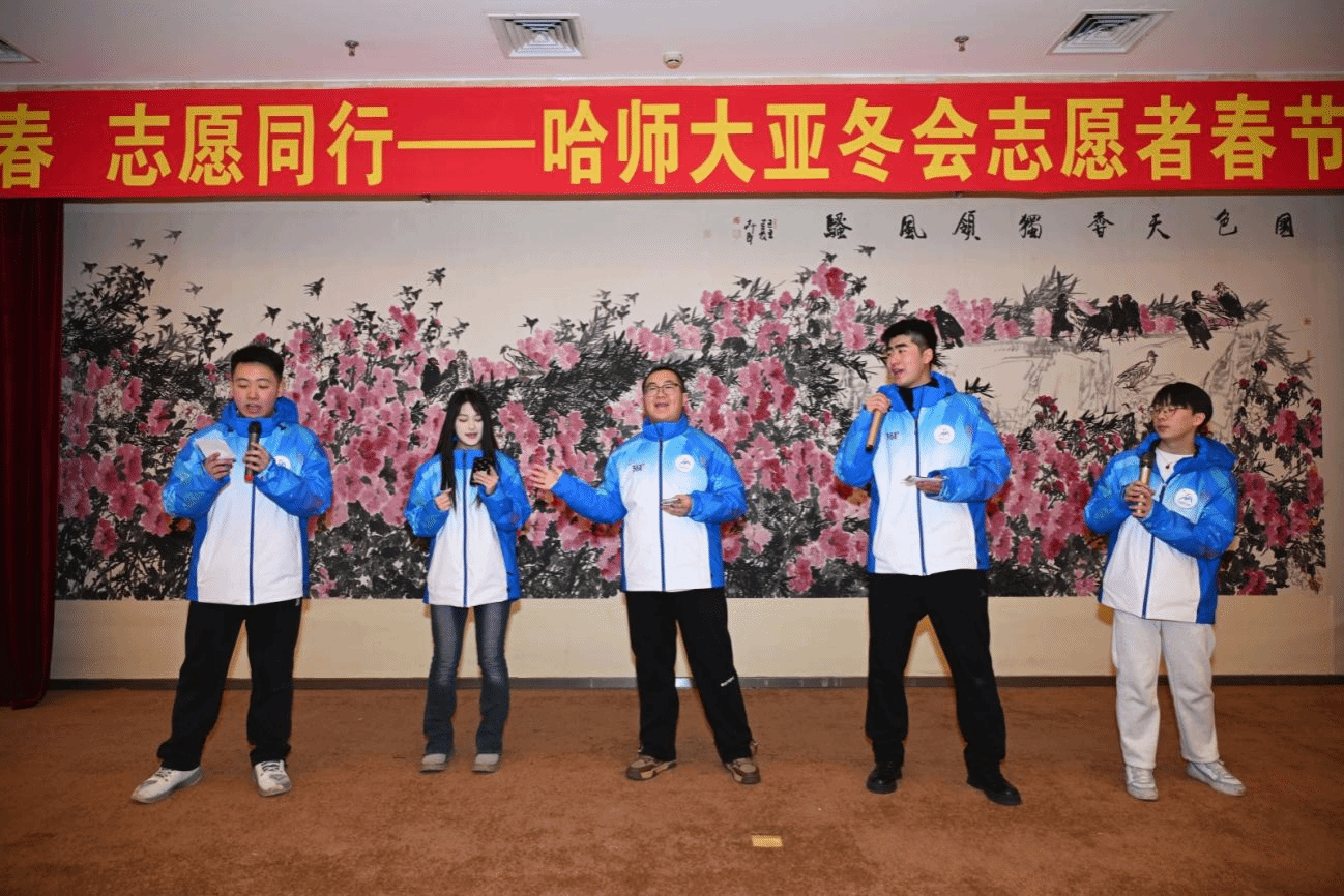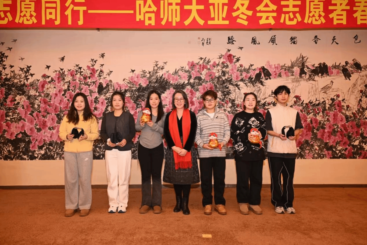 郭砾代表学校党委向全体志愿者们致以新春问候。她指出,本届亚冬会是继北京冬奥会后我国承办的又一重大国际体育赛事。我校派出800余名师生参与亚冬志愿服务活动,这不仅是个人难忘的成长历练,更是向世界展示中国青年风采的重要契机。在新春佳节阖家团圆之时,志愿者们毅然坚守岗位,为亚冬会的顺利举办倾情付出,用行动诠释着志愿精神,展现出中国青年的担当与奉献。她勉励全体志愿者要踏实履职尽责,为光荣梦想助力,积极熟悉岗位职责,提升服务水平,提供优质服务,倾力奉献、全情服务;擦亮青春名片,为友好交流护航,充分发挥青年优势,让更多运动员、游客、观众感受中华文化,促进友好交流;主动担当作为,为冰雪画卷添彩,在服务亚冬的生动实践中,探索更多延续冰雪热度的路径方法和传播中华文化的形式载体,为龙江振兴、为哈尔滨城市发展注入青春动能。