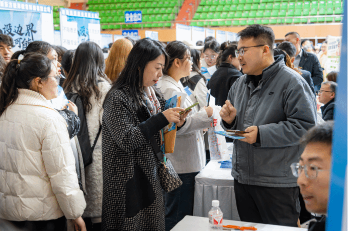 郭砾在活动现场与用人单位亲切交流,对用人单位长期以来对学校的关心支持表示感谢,并详细了解人才需求和行业发展情况。各学院毕业生积极参会,部分学院组织低年级学生到会学习体验,提前感受就业氛围和招聘会热度,招聘会现场人头攒动,供需双方对接踊跃。各学院领导、毕业年级辅导员现场指导毕业生求职,与用人单位交流对接,探索开拓就业新渠道。