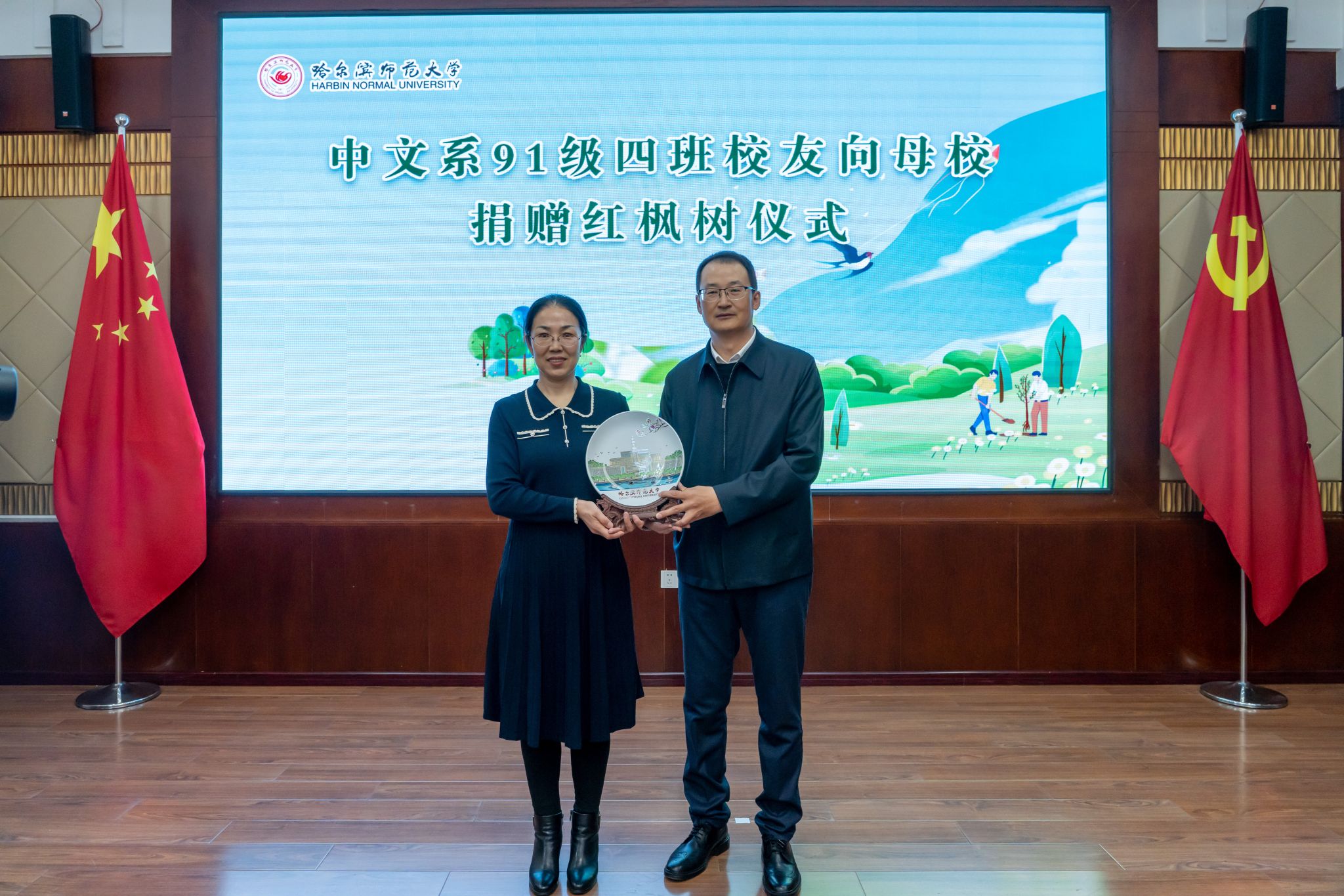 4月13日上午,我校中文系1991级4班校友向母校捐赠红枫树仪式在行知楼0107会议室举行。校党委副书记王辉参加仪式并致辞。党委常委、统战部部长、校友总会秘书长宿建,文学院相关负责同志及校友代表参加捐赠仪式。捐赠仪式由党委办公室副主任孙志成主持。