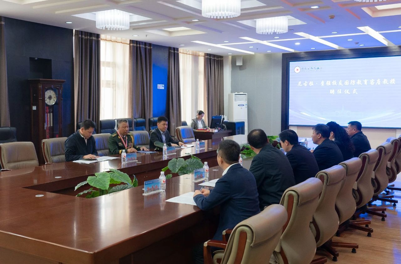 5月14日,我校在行知楼1015会议室举行尼古拉·查强校友国防教育客座教授聘任仪式暨第12期校友讲坛。校长蒋鲲出席活动并致辞,党委副书记王辉主持活动。党委常委、宣传部(党委教师工作部)部长张艳君,党委常委、统战部部长、校友总会秘书长宿建,党委办公室、学生工作部(学生处、武装部)、体育科学学院相关同志参加活动。
