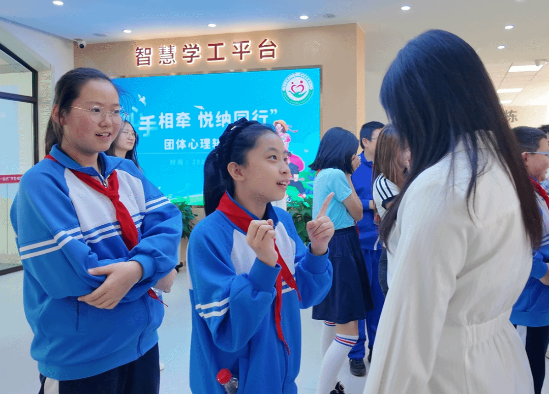 随后,学生工作部(学生处、武装部)心理健康教育中心在“一站式”学生社区举办主题为《心手相牵 悦纳同行》的团体心理辅导活动,本次活动由心理健康教育中心专职教师张洪岩担任主讲人,我校学生代表及新区第二学校学生代表参与此次活动。