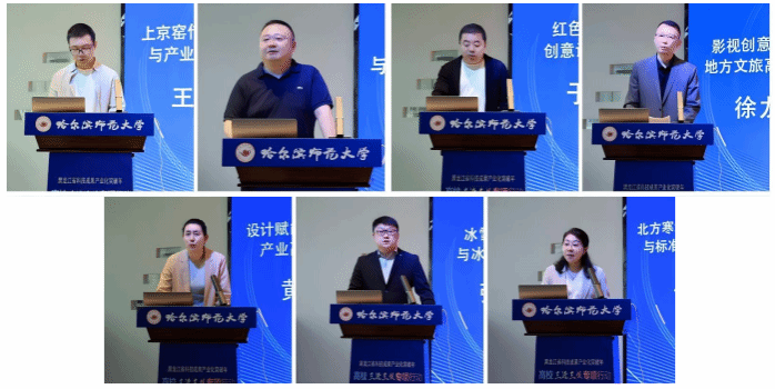 在创意设计成果路演展示环节,我校上京窑工作室负责人王仁亮以《上京窑传承创新成果与产业化模式构建》为题,福栖文创工作室负责人裴佳兴以《城市品牌、文旅ip与产品品牌系统化构建》为题,红色雕塑创作研究中心负责人于猛以《红色主题雕塑创意设计与转化》为题,森慕电影工作室负责人徐龙稷以《影视创意拍摄赋能地方文旅高质量发展》为题,善视觉设计工作室负责人黄茜以《设计赋能龙江农文旅产业高质量发展》为题,龙江冰雪艺术坊负责人张鑫以《冰雪景观设计与冰雪文旅赋能》为题,王继华以《龙江菌香--北方寒地羊肚菌品种选育与标准化栽培实践路径》为题先后展示了各团队的创新成果,充分展现了我校在创意设计领域的综合实力。