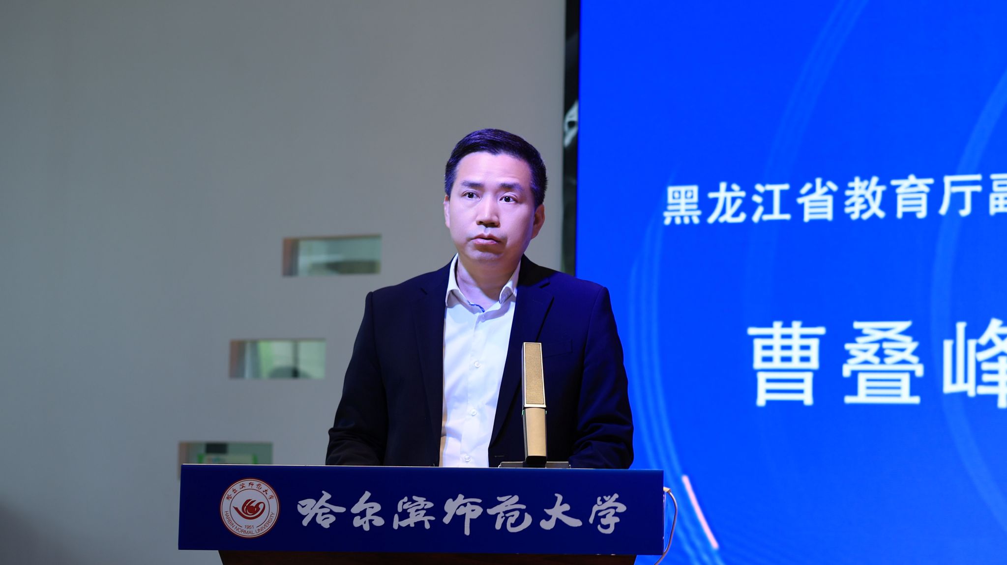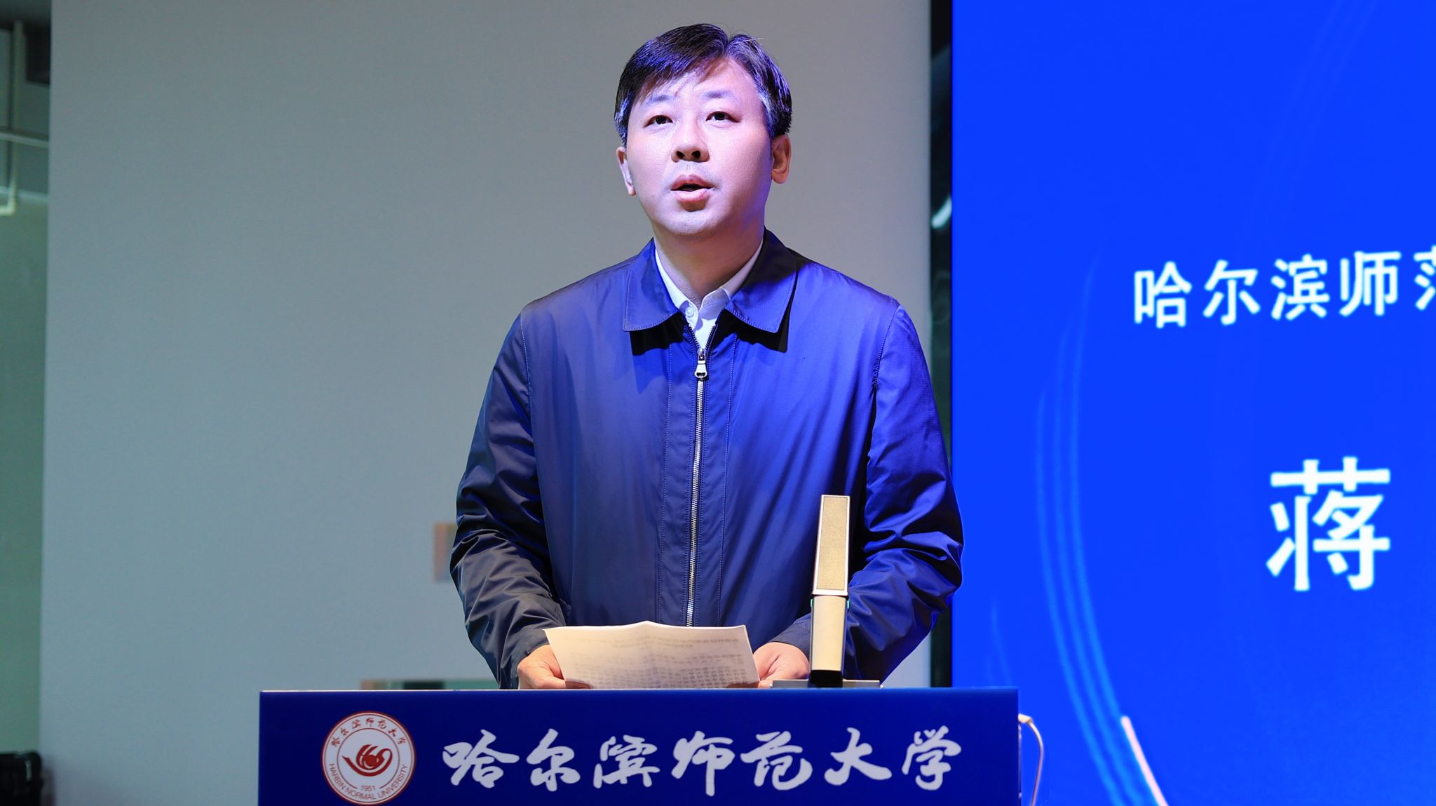 蒋鲲在致辞中重点介绍了学校近年来全力推进科技成果产业化落地方面的主要举措、特色优势与丰硕成果;蒋鲲表示,学校将持续做深做实校企地共建合作,加快科研创新链和产业链的深度融合,积极推动科技成果产业化,为龙江高质量发展、可持续振兴贡献哈师大力量。