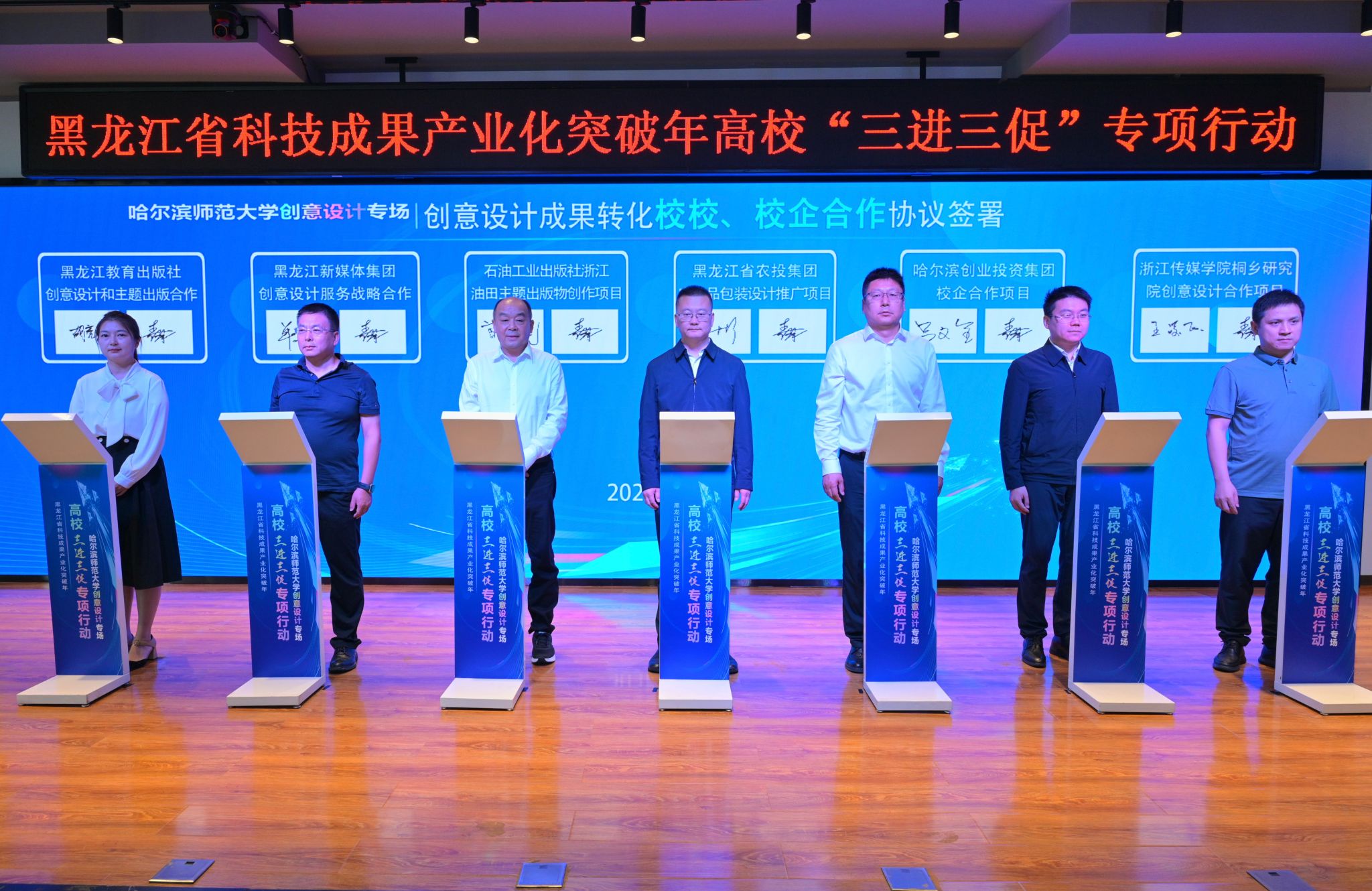 为深入贯彻落实省委省政府科技成果转化突破年工作部署,推动科技创新和产业创新深度融合,6月16日上午,由黑龙江省教育厅、黑龙江省科学技术厅指导,拼搏在线登录主办的高校“三进三促”创意设计专场活动在江南校区双创园举办。黑龙江省委宣传部副部长徐晓良,黑龙江省教育厅副厅长曹叠峰,黑龙江省科技厅副厅长石兆辉,大兴安岭行署副专员王跃然,黑龙江省委宣传部原一级巡视员、省创意设计产业协会会长刘维宽,我校校长蒋鲲出席活动。校党委副书记、园区管委会副主任郭砾主持活动。