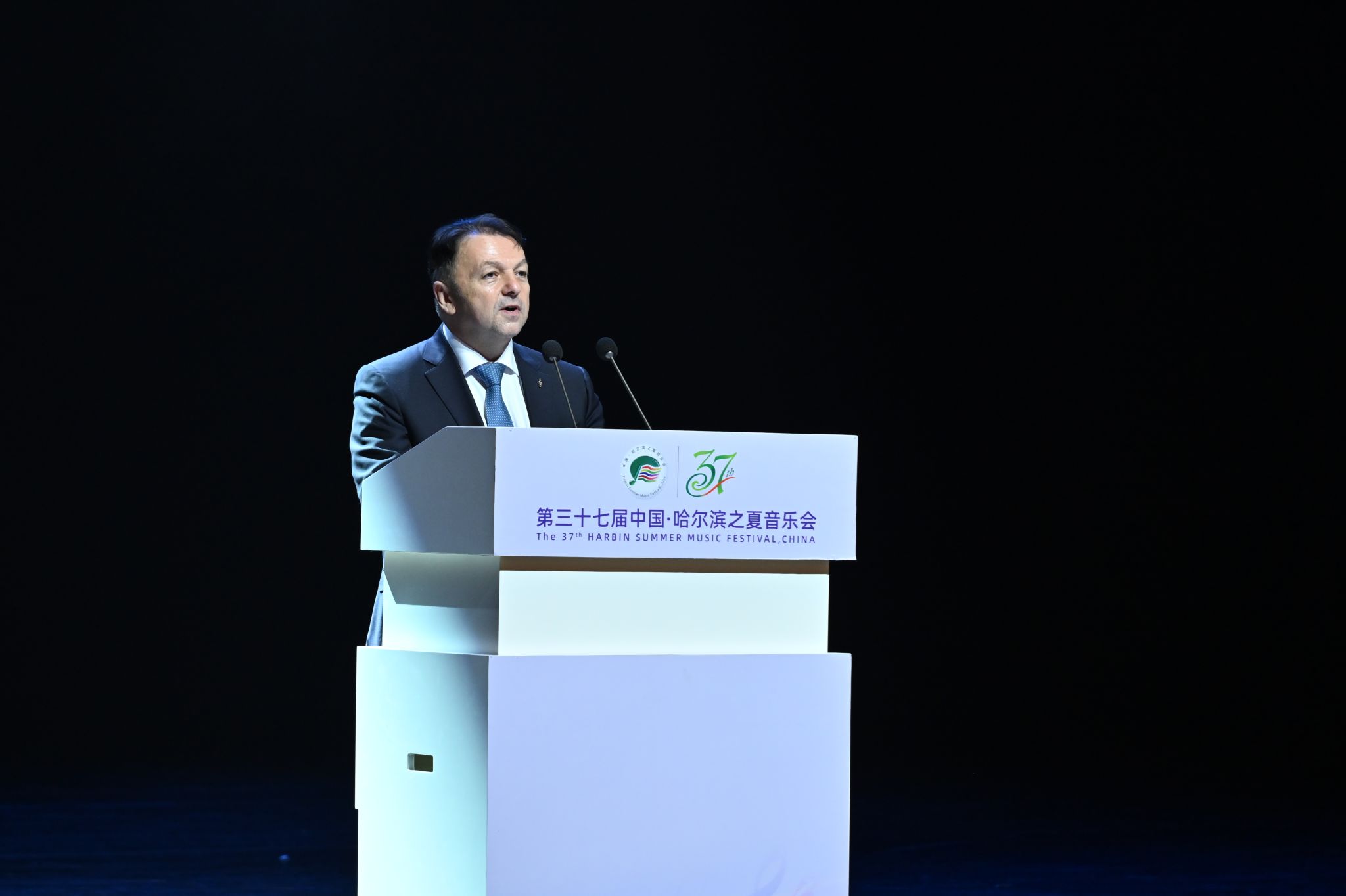 米高·帕塔里尼在致辞中盛赞,哈尔滨作为“世界音乐之城”有着灿烂的音乐文明和厚重的人文积淀,哈尔滨国际手风琴艺术周作为“哈夏”音乐会的重要板块,已发展成为国际性学术和文化交流的重要载体。相信第七届哈尔滨国际手风琴艺术周作为专业化、多元化、国际化的音乐盛会,将再一次给全球的音乐家及音乐爱好者们留下难忘的回忆。