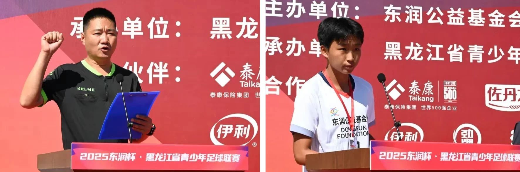 共青团黑龙江省委副书记代东力宣布“2025东润杯·黑龙江省青少年足球联赛”正式开幕。与会领导嘉宾共同步入球场为联赛开球。