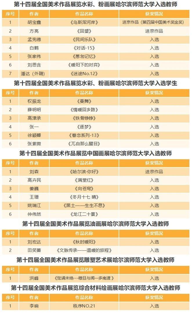 近日,中国美术家协会官方网站公布了第十四届全国美术作品展览复评结果。经过多轮评审,我校教师胡宝鑫创作的水彩画作品《乌斯浑河岸》斩获第四届“中国美术奖”金奖(全国仅9件),这是继第十三届全国美术展以来,我校教师作品再获此项殊荣。同时,我校美术学院师生共有23件作品入选第十四届全国美术作品展览,其中3件为进京作品。