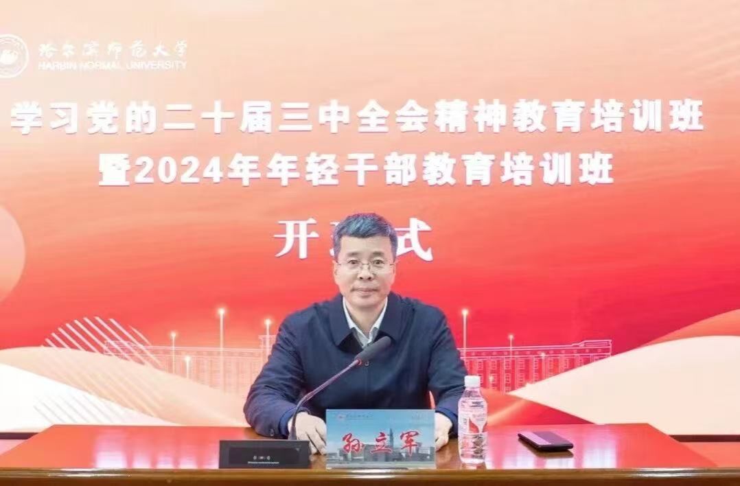 11月8日上午,学校学习党的二十届三中全会精神教育培训班暨2024年年轻干部教育培训班在松北校区二楼会议室开班,党委书记孙立军主持会议并讲话。