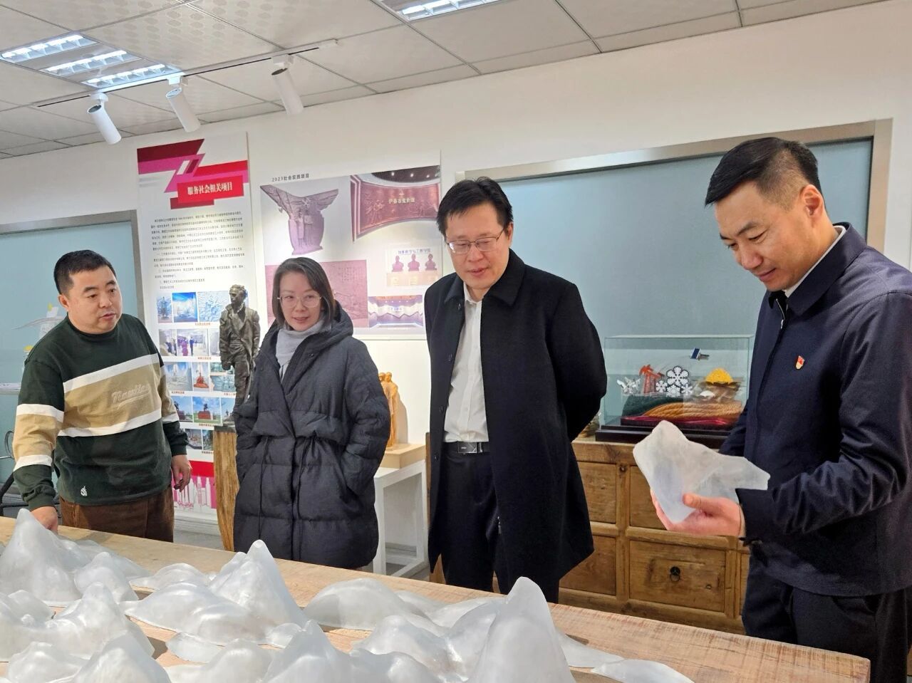 郭砾对王跃然一行人员到访表示热烈欢迎,并简要介绍我校创意设计产业园区发展建设基本情况。调研组实地走访园区教师工作室和文化艺术数智化省级重点实验室,着重了解“上京窑”龙江特色高温陶瓷、城市形象IP打造和品牌战略规划经典案例、文旅形象宣传片制作、冰雪雕塑等创意设计产业项目,对学校创意设计产业项目成果转化、工作室运营、实践育人等方面取得的成效给予高度评价。