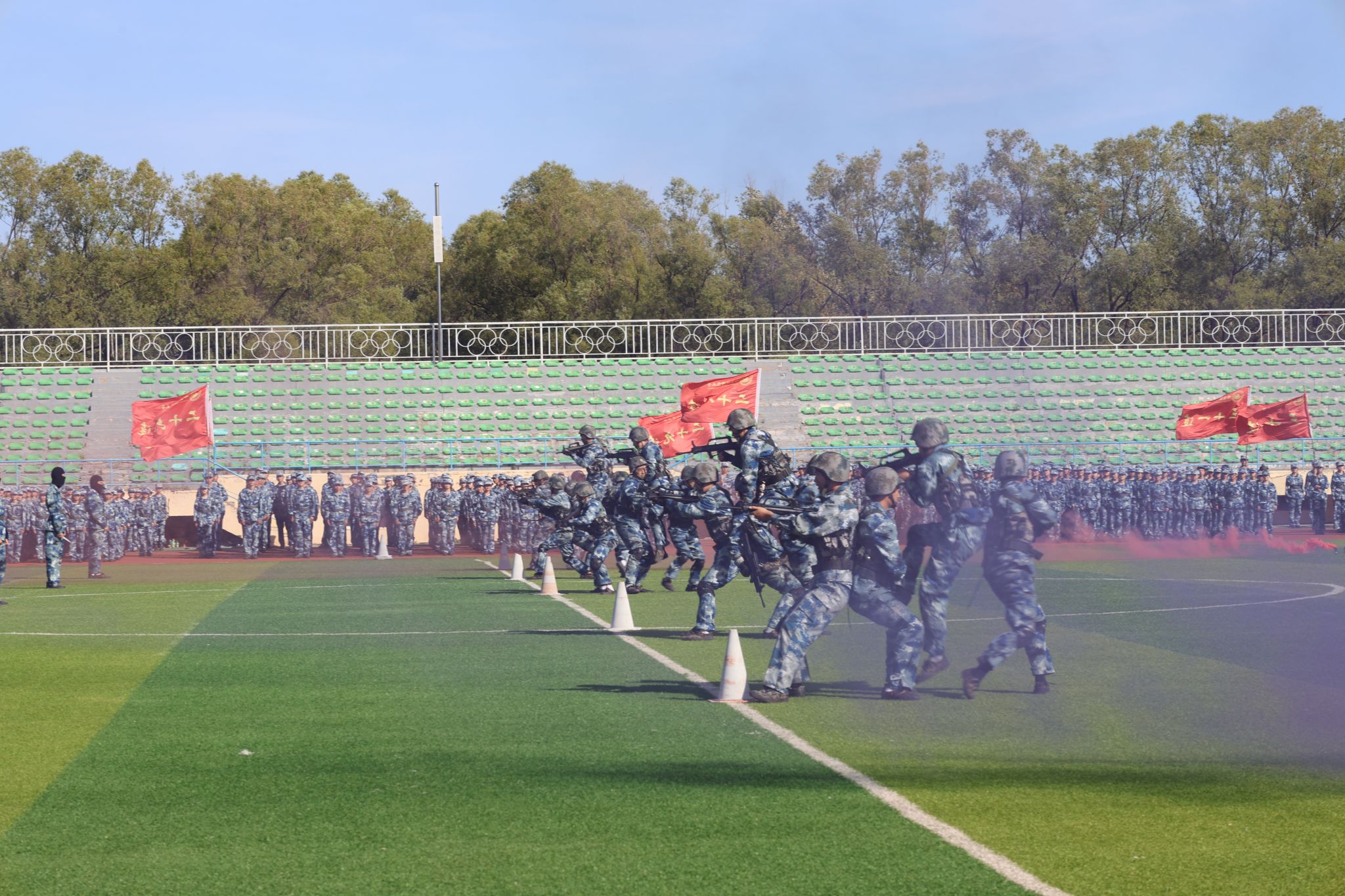 伴随着嘹亮的军歌和飘扬的五星红旗
