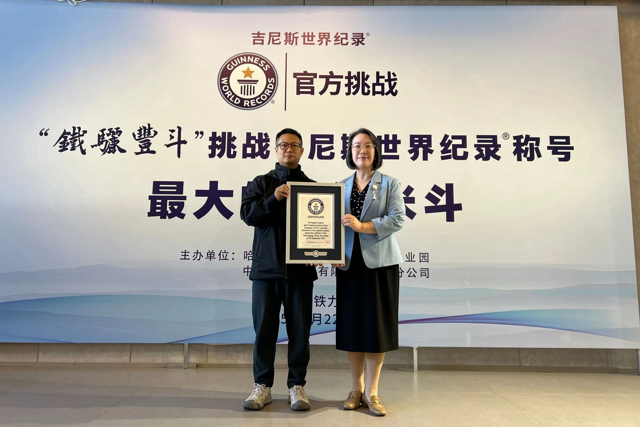 此前,学校创意设计产业园区王洋团队与铁力市合作打造“乡村艺术文创工坊”,推出“驖骊窑”系列陶艺作品,其中打造的“鐵驪豐斗”成功挑战吉尼斯世界纪录,斩获“最大的陶瓷米斗”称号,为铁力农耕文化与陶瓷工艺的融合发展写下浓墨重彩的一笔。