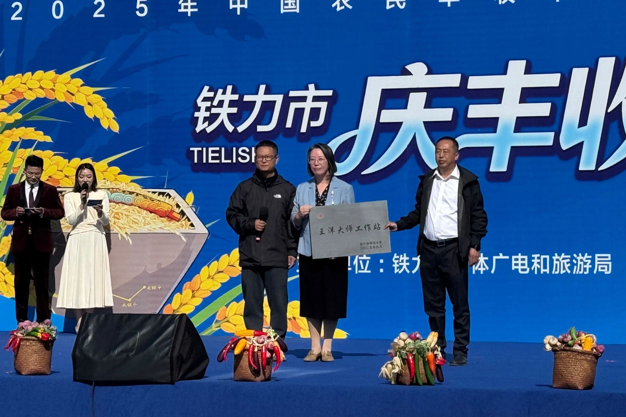 同日,2025年中国农民丰收节——铁力市“庆丰收·悦奔跑”欢乐跑活动在铁力市年丰乡山泉现代农机农民专业合作社拉开帷幕。市委书记吕晓光宣布活动启动,市委副书记、市长王浩致辞。郭砾受邀参加此次活动并代表学校为铁力市王杨渠首“王洋大师工作站”授牌。