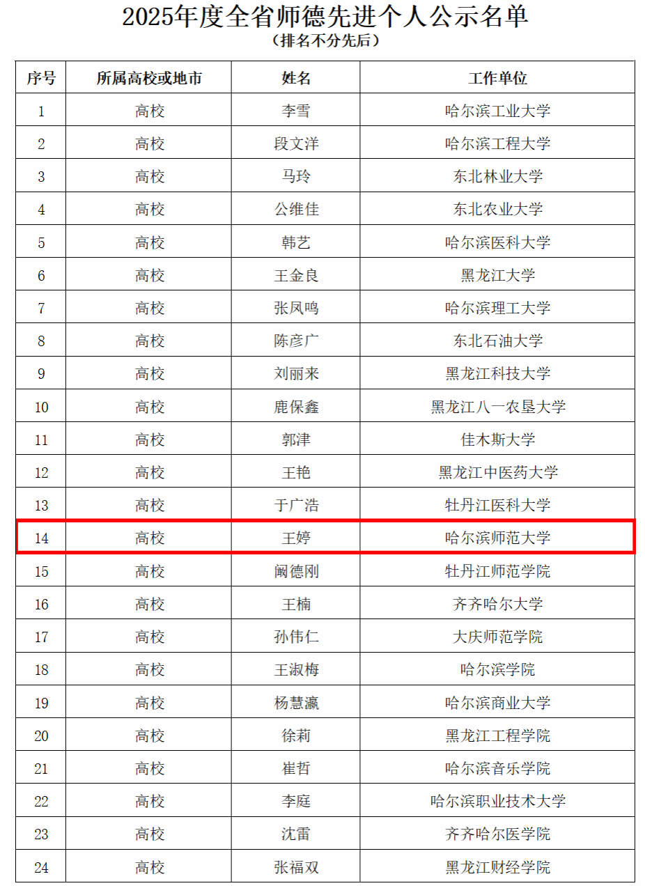 喜报 | 我校在2025年度黑龙江省师德先进集体和先进个人评选中再获佳绩