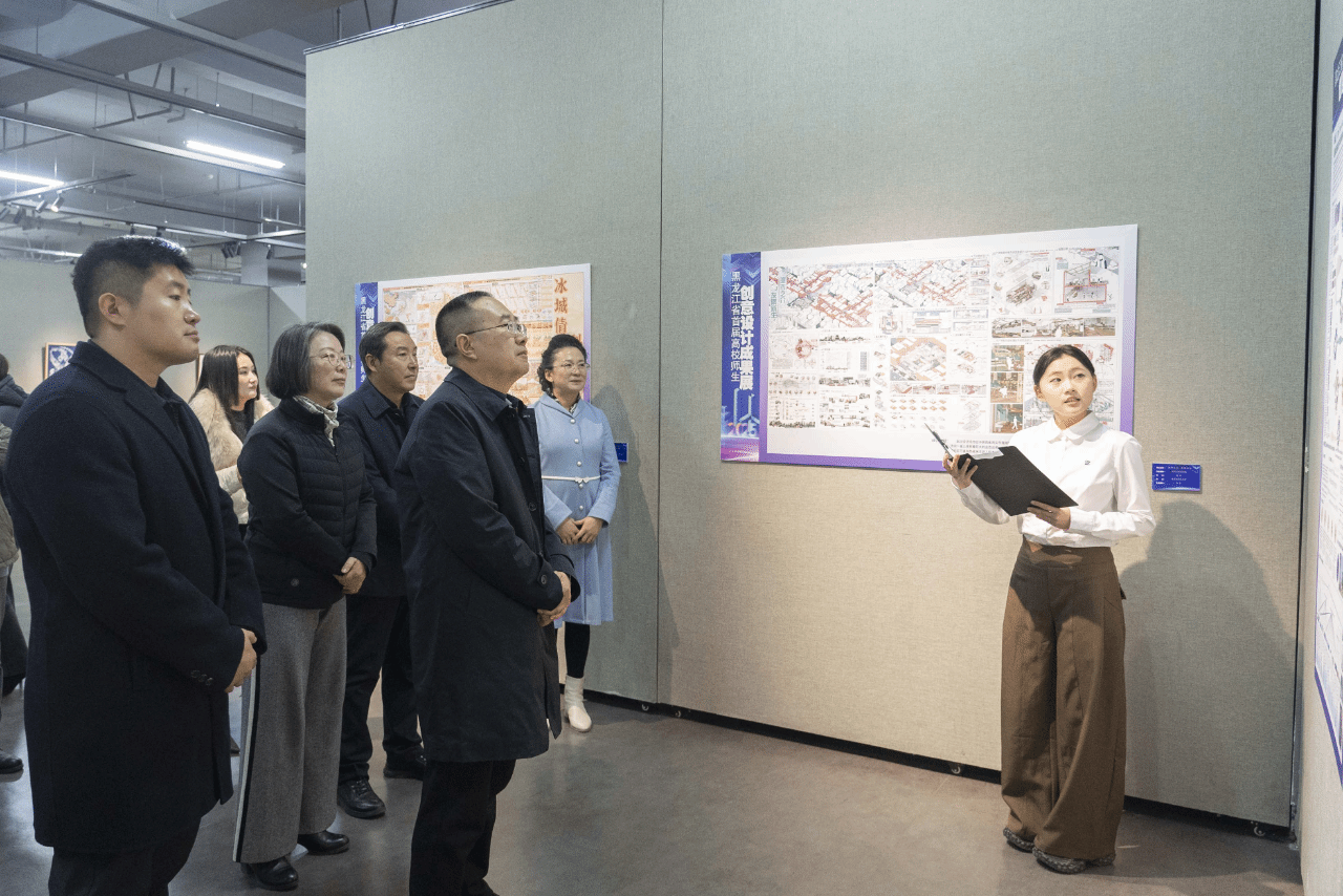 活动结束后,与会嘉宾一同参观了创意设计产业园区创意设计成果展示大厅和团队工作室,听取了由校团委书记、园区管委会办公室主任刘春玲围绕园区筹建历程、发展现状和未来发展规划所作的汇报。与会嘉宾对学校在创意设计成果转化、工作室运营模式创新和园区版权保护等方面取得的成果给予高度评价。