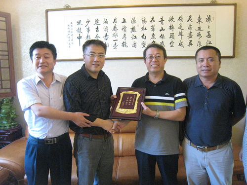 图 我校向北京密云县教育局授予“携手育桃李,合作创未来”的纪念牌