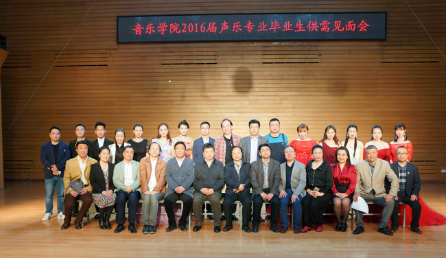 (左游/文)5月11日晚,音乐学院在江南校区音乐厅举办了2016届声乐专业毕业生供需见面会。黑龙江省演艺集团(省歌舞剧院、省曲艺团、省杂技团三家合并)和哈尔滨市歌剧院来我校招聘声乐专业毕业生。音乐学院领导班子以及部分声乐教师参加了此次招聘会。