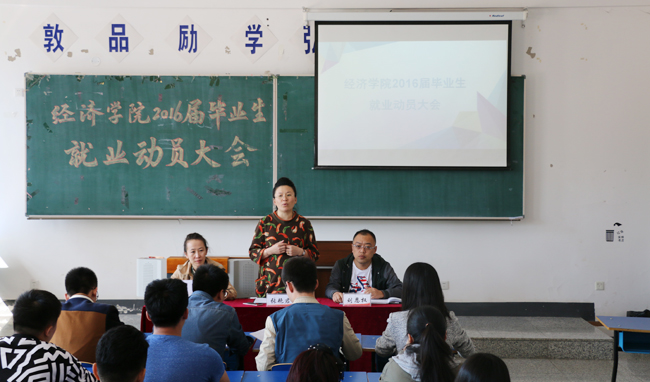 (刘恩权/文)2016年5月13日,经济学院2016届毕业生就业动员会在崇师楼A120室召开。党委书记张艳君、党委副书记翟力及2016届在校毕业生参加了此次会议。