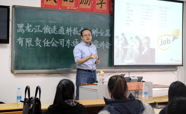 黑龙江俄速通科技企业是一所以对俄跨境电商物流及相关业务为起点,以跨境电商人才孵化为基础,以对俄跨境电商交易为动力的国际物流公司,是阿里速卖通线上最大的对俄跨境物流服务商。宣讲负责人史法实经理从传统物流与俄速通跨境物流的区别开始介绍,依次向同学们展示了黑龙江俄速通科技企业的历史沿革、业界影响及获得的成就。详细的讲解了公司所能提供的职位、新员工的成长路线规划、公司提供的待遇和未来就业前景。