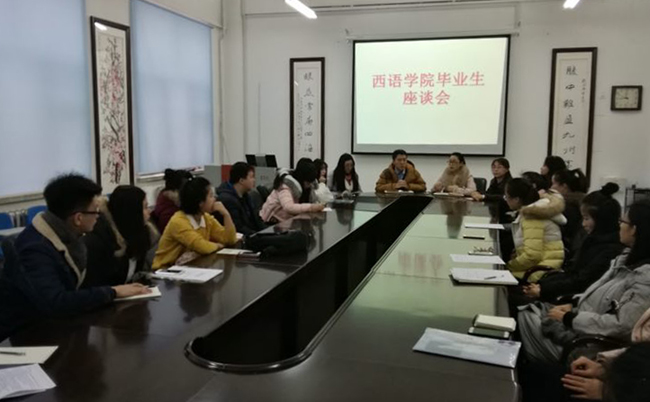(杨晓明/文)为进一步贯彻落实《拼搏在线登录大学生思想政治教育“112349”工作模式实施方案》文件精神,及时掌握当前毕业生就业状况、有效开展毕业生服务工作、促进毕业生顺利择业、就业。12月20日上午,在西语楼211会议室召开了2017届毕业生就业座谈会,学院党委副书记刘春玲出席会议,毕业班辅导员和英语教育、商务英语、英语翻译、法语、西班牙语、葡萄牙语六个专业30多名毕业生代表参加了座谈会,座谈会由副处级辅导员杨晓明主持。