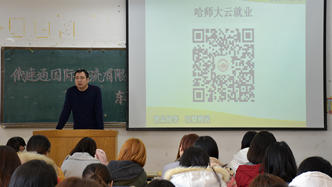 齐国涛从大学生创业、就业信息的获取渠道、学校毕业生工作日程安排、日常请假手续、违纪解除手续、签订就业协议的注意事项等多个方面为学生介绍了国家及学校的相关政策法规,并对毕业生应征入伍、三支一扶、大学生村官、志愿服务西部计划等学生关注的就业问题做了详细的讲解,重点强调了生源地核对、教师资格证申报、档案发放、就业安全等日常管理工作,针对不同学生的特点,为同学们提供了三资企业就业、考研、出国、考取公务员、申报国家汉办志愿者等多种就业建议。