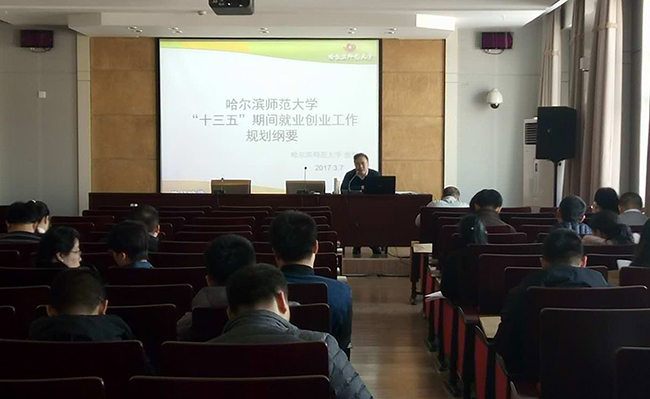 张令彬提到,“十三五”期间就业创业工作的开展作为我校教育发展战略的重要组成部分,是我校就业工作承前启后的重要节点。必须认真学习贯彻党的十八大、五中、六中全会以及全国高校思想政治工作会议精神。全面落实、认真执行我校大学生思想政治教育112349工作模式。准确分析审视就业形势、认真贯彻落实就业政策。不断加强我校毕业生就业指导教育咨询服务队伍建设水平。积极响应国家关于进一步引导和鼓励高校毕业生到基层工作的意见精神。推进构建“以创新为基础的创业”和“以创业为导向的创新”机制。把握国家宏观政策导向,积极开拓适合我校自身特色的就业创业模式,准确把握就业创业市场信息变化发展,努力提升我校毕业生就业率与就业质量。