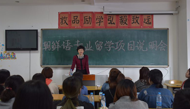 (姜雪娥/文)为帮助朝鲜语专业学生了解留学项目及国内外就业形势,4月19日下午,东语学院在社科楼619教室举办了朝鲜语专业留学项目说明会。学院副院长金锦善、朝鲜语专业李楠老师、国际交流合作处相关同志以及全体2015级朝鲜语专业学生参加了说明会。