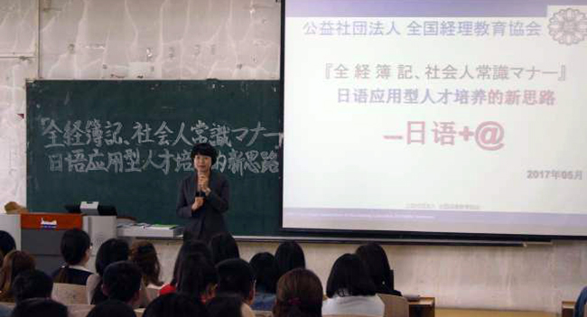林琳女士在讲座中比较全面的介绍了“全经簿记能力检定考试”和“日本社会人常识礼仪坚定老师”并以实际案例向同学介绍了簿记证书和礼仪证书在中日两国的受认可程度以及在就业中所发挥的优势。对于考试的时间安排和考试内容,林琳女士做了简要说明和介绍,并表示全经协会能够为同学们提供免费课程指导。