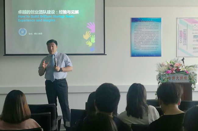 讲座围绕创业团队开创及未来发展过程中的团队建设这一主题展开。首先,从当今世界经济的竞争形式角度剖析团队的重要性切入主题;而后,从八个角度列举团队效率的评判标准;还从团队的视角,为大家分析管理和管理者的基本要素,并以联想家族企业故事说明如何推动变革的成功;最后,徐光从人才管理方面结合实际案例,分析介绍管理团队人才与团队成员沟通的有效办法。讲座的尾声,徐光与现场听众进行了互动,同学们积极主动提出自己的疑惑,徐光的回答风趣幽默,使得演讲现场气氛十分热烈,参见交流的师生一致反映报告精彩、内容丰富,收获很大,很多同学感觉意犹未尽。最后,讲座在全场教师及同学们热烈的掌声中圆满结束。