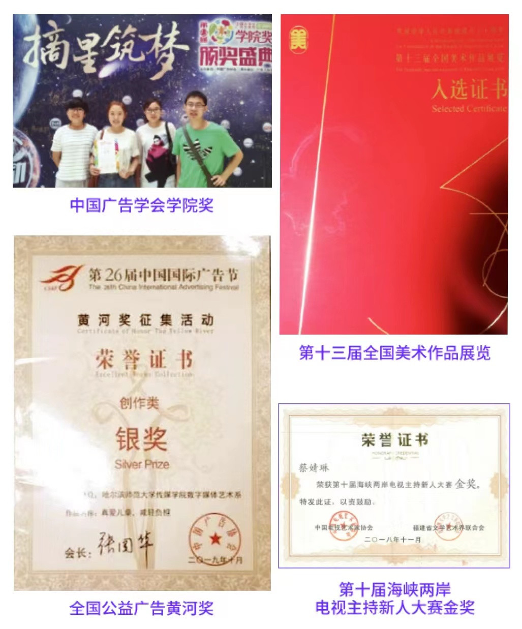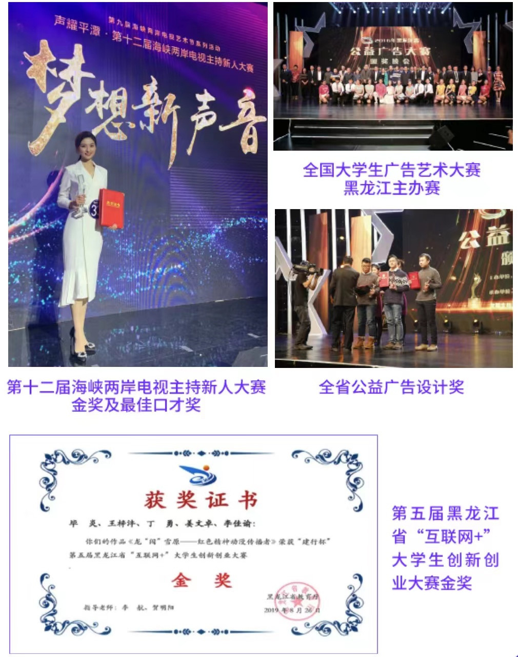 ★第十届、第十二届海峡两岸电视主持新人大赛金奖及最佳口才奖