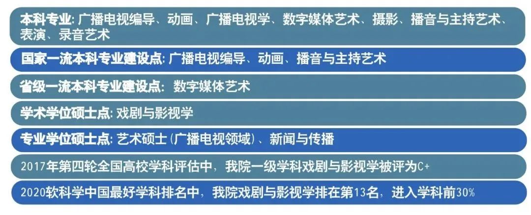 ★广播电视艺术系、动画系、新闻系、数字媒体艺术系、影像艺术系、播音与主持艺术系、表演艺术系