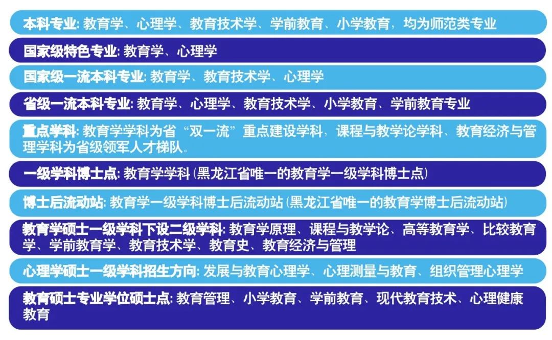 ★5个挂靠学会:黑龙江省陶行知研究会、黑龙江省心理学会、黑龙江省教育学会教育学专业委员会、黑龙江省教育学会课程与教学论专业委员会、黑龙江省高等教育学会比较教育专业委员会。