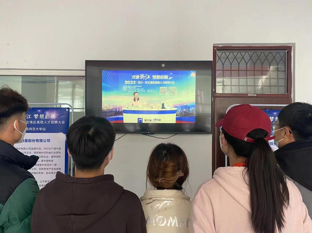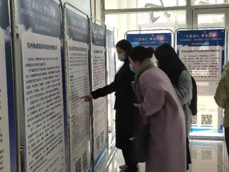 此次活动,共有浙江省11个地市500余家企事业单位参会,推出各类岗位3319余个,需求人数12653人,涉及信息技术、金融、能源化工、建筑、教育等18个行业。活动当天,浙江省人才市场创新开展带岗进校、云端应聘,活动当天现场展示127家与我校专业匹配度高的知名企事业单位海报岗位信息,我校500余名学生现场查看岗位信息,线上扫码投递简历。