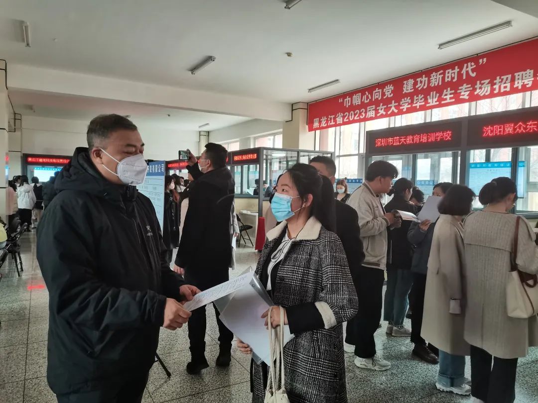 (冯亮/文)为贯彻落实2023届全省普通高校毕业生就业创业工作会议精神,助力女大学毕业生充分高质量就业,由省教育厅携手省妇联、团省委举办,省大学生就业创业指导中心和拼搏在线登录承办的“巾帼心向党 建功新时代 ”黑龙江省2023届女大学毕业生专场招聘会于2023年3月7日在江北校区崇师楼招聘服务大厅顺利举行。省大学生就业创业指导中心副主任刘鸿宇、就业创业服务部部长孙庆彬,我校学生就业指导处处长王阿诺,部分学院党委书记、党委副书记和毕业年级辅导员参会。