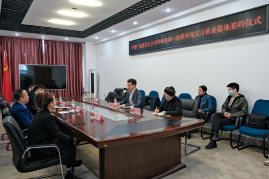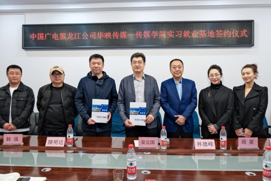 (于曜铭/文)为促进人才培养,加强合作交流,推进产教融合,构建新型人才培养机制,4月13日下午,传媒学院与中国广电黑龙江网络公司华映传媒举行了实习就业基地签约仪式,我校传媒学院副院长安立国、广播电视艺术系主任韩强、传媒学院播音和主持艺术系主任阎菲,中国广电黑龙江网络公司副总经理林德峰、中国广电黑龙江网络公司华映传媒总经理隋明达、视频业务部总监史清波与广告业务部总监李卉等出席仪式。