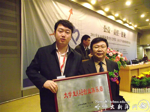 2月26日,2011年KAB创业教育年会暨第三届大学生就业创业教育论坛在湖南大学举行。会议由共青团中央、全国青联、全国学联与联合国国际劳工组织主办。继2010年3月我校成功获批“KAB创业教育基地”后,在学生就业指导处和团委的指导帮助下,地理科学学院经过努力成功获批“大学生KAB创业俱乐部”。本次会议获批的单位全国共有100所,黑龙江省有5所。