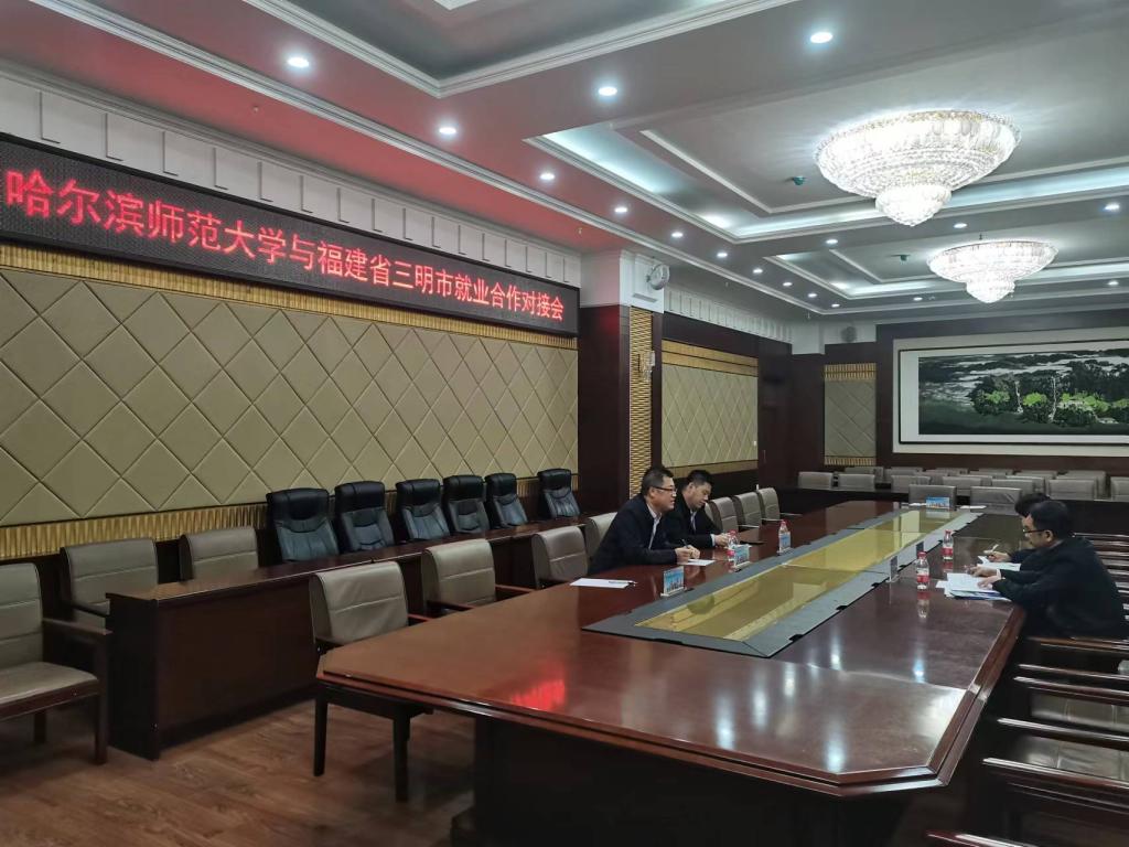 王阿诺对三明市各位领导到访哈师大表示欢迎,并介绍了学校发展历史、学科设置、办学特色和就业创业等情况。王阿诺说,三明市是中央红军长征的四个出发地之一,有光荣革命传统和厚重文化底蕴,是中国绿都、国家森林城市,也是一座具有改革创新基因的城市,希望以此次合作洽谈会为契机,进一步深化哈师大和三明市在人才培养、就业创业等领域的沟通合作,互惠互利,合作共赢。