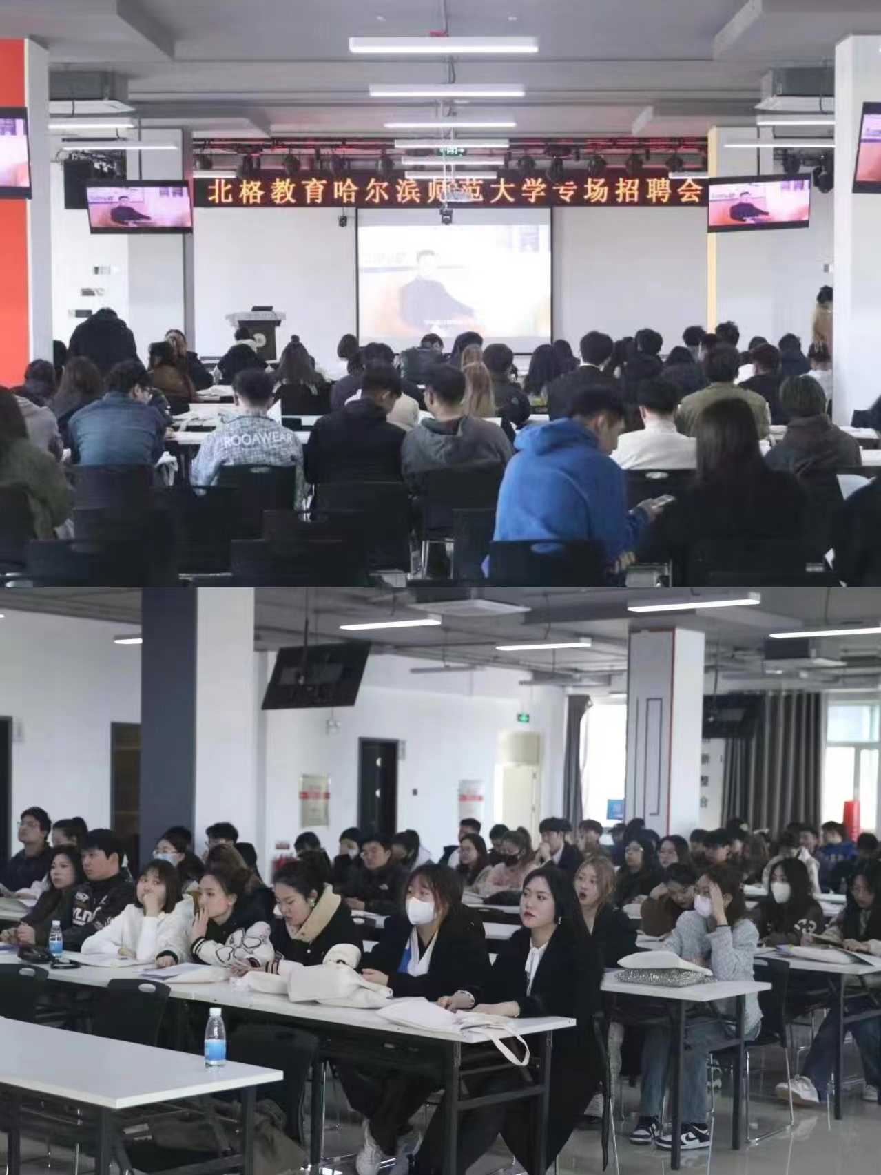 冯娜在报告中专门分享了两位2016届哈师大美术专业优秀毕业生于北格公司的择业和成长的经历。在进入北格后,他们均已成长为公司的核心业务骨干。通过分享二人在北格成长奋斗的真实经历,更加激发了现场同学对北格教育的浓厚兴趣与对如何尽快适应从校园到社会的转变历程深深的思考,纷纷踊跃提问,