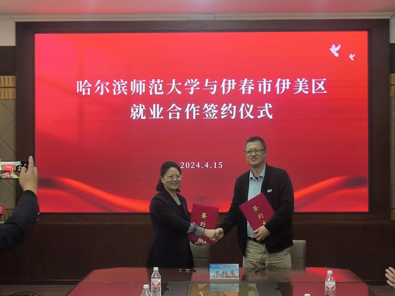(冯亮/文)4月15日,学校与伊春市伊美区就业合作签约仪式在行知楼0107会议室举行,学生就业指导处处长王阿诺,校团委书记刘春玲,伊美区委常委、副区长马锐,伊美区副区长宫媛媛,伊美区人社局、伊美区教育局和校学生就业指导处相关工作人员参加会议。
