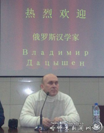 俄罗斯克拉斯诺亚尔斯克国立师范大学历史系知名教授、著名汉学家弗拉基米尔•大气生(Дацышен•Владимир•Григорьевич)及夫人来拼搏在线登录斯拉夫语学院做了精彩的学术报告。报告从中俄关系的发展历史、早年汉学在俄国的研究情况以及他本人对我国东北历史、文化等方面的见解进行了卓有成效的探讨,并对当前俄罗斯人掀起的汉语热等方面作了详细的介绍。他的报告对中俄两国文化、教育等方面的交流,特别是对我国了解俄罗斯汉学研究动态具有现实意义。报告后学院师生与专家及其家人还进行了热烈的讨论和交流,师生反响热烈,收获颇丰。