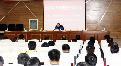5月12日下午,根据学校党委决定,学校纪委组织了以观看警示教育片《背叛与忏悔》为主要内容的反腐倡廉警示教育活动,该片以多年工作在教育战线的当事人河南省教育厅原助理巡视员靳建禄、武汉理工大学原副校长李海婴违纪违法案件为题材,具有较强的警示教育意义。学校党政领导及全校副处级以上领导干部200余人参加了活动,活动由党委常委、纪委书记蒋晶洁主持。