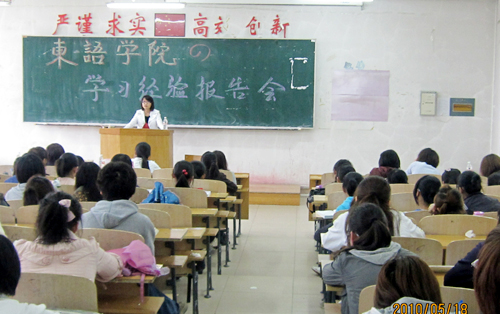 为了帮助学生树立学习的信心,养成良好的学习习惯,掌握正确的学习方法,尽早的做好职业规划,根据学院五月份“学风建设促进月”活动的总体安排,5月18日下午在教育楼552教室,东语学院团委邀请日语教育专业2006级孔祥莹同学为2008、2009级学生作了一场生动的学习经验报告会。
