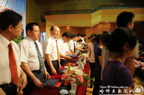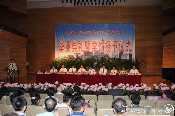 仪式上党委副书记王广明,党委常委、副校长徐晓风分别宣读了我校2010届博士研究生、硕士研究生、本科、专科和留学生毕业生名单、获得黑龙江省2010届优秀毕业生名单、2010届毕业生考研奖学金获得者名单、边远贫困地区就业奖金获得者名单、优秀团员、优秀团干部名单。学校领导为获得博士、硕士学位的毕业生授予了学位,为本专科毕业生颁发了毕业文凭,为获得奖励的毕业生代表颁发了荣誉证书。